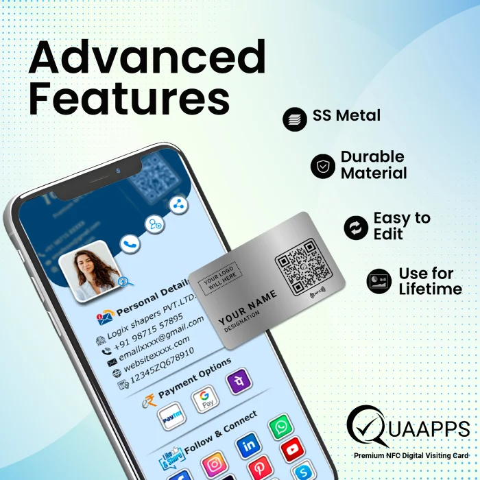 Introducing the Quaapps VIP Metal NFC Business Card, crafted to deliver a premium experience every time you share your contact details. More than just a business card, it’s a reflection of your professionalism and refined taste.