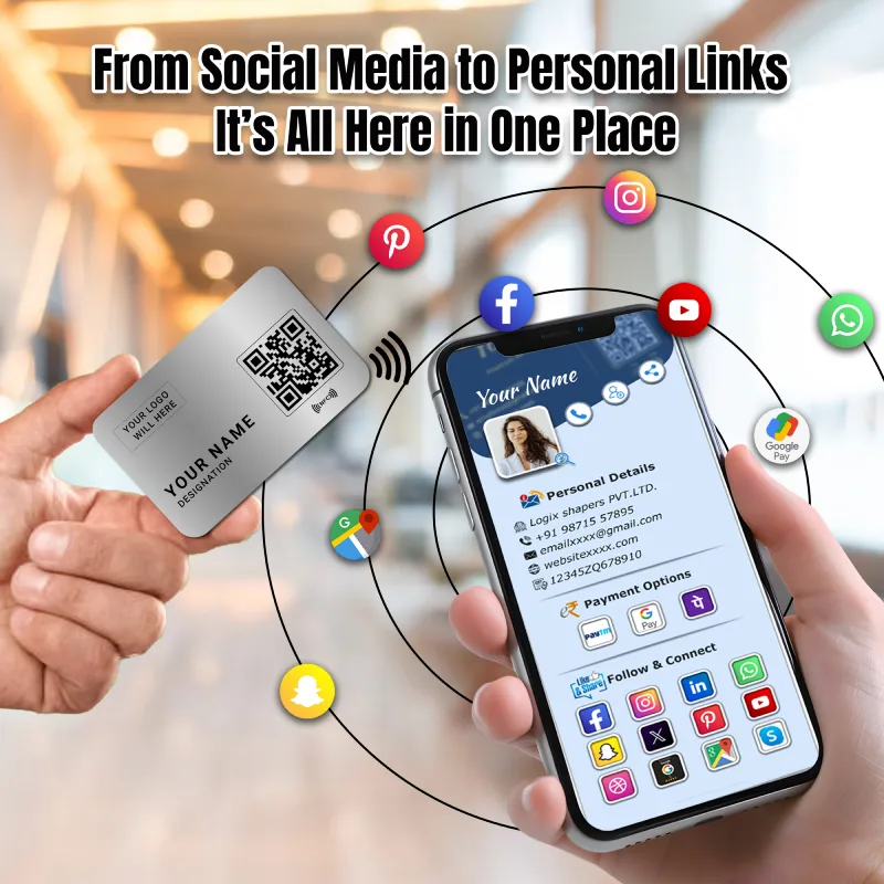 All our products are NFC enabled. Just with a tap or scan, you can easily connect with your customers and enhance client engagement & social media reach.